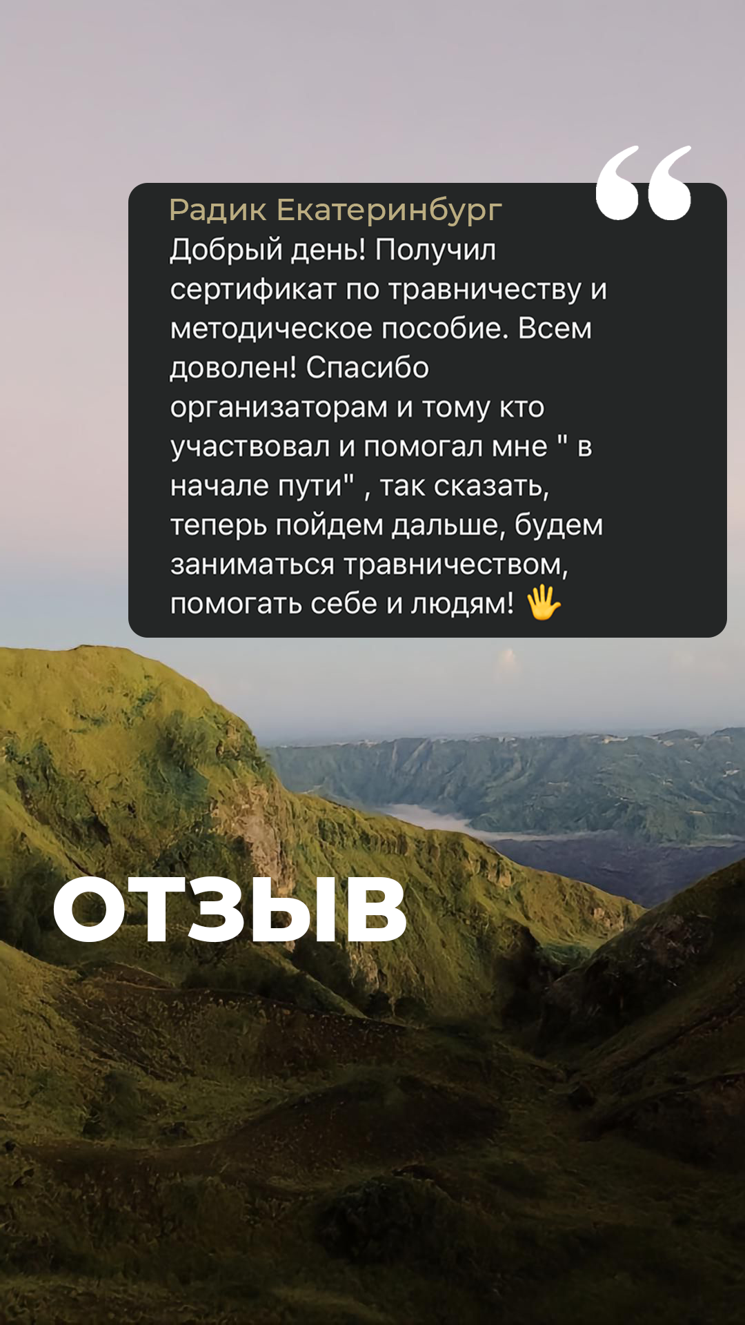 При успешном освоении курса вы можете приобрести Сертификат Аккредитации на занятие народной медицины. Сертификат Аккредитации выдается Профессиональным Медицинским Центров в сфере Альтернативной и Народной медицины подотчетно Министерству Юстиций. Аккредитация подтверждает ваши навыки в сфере альтернативной медицины и вас вносят во Всероссийский реестр специалистов по Альтернативной медицине.